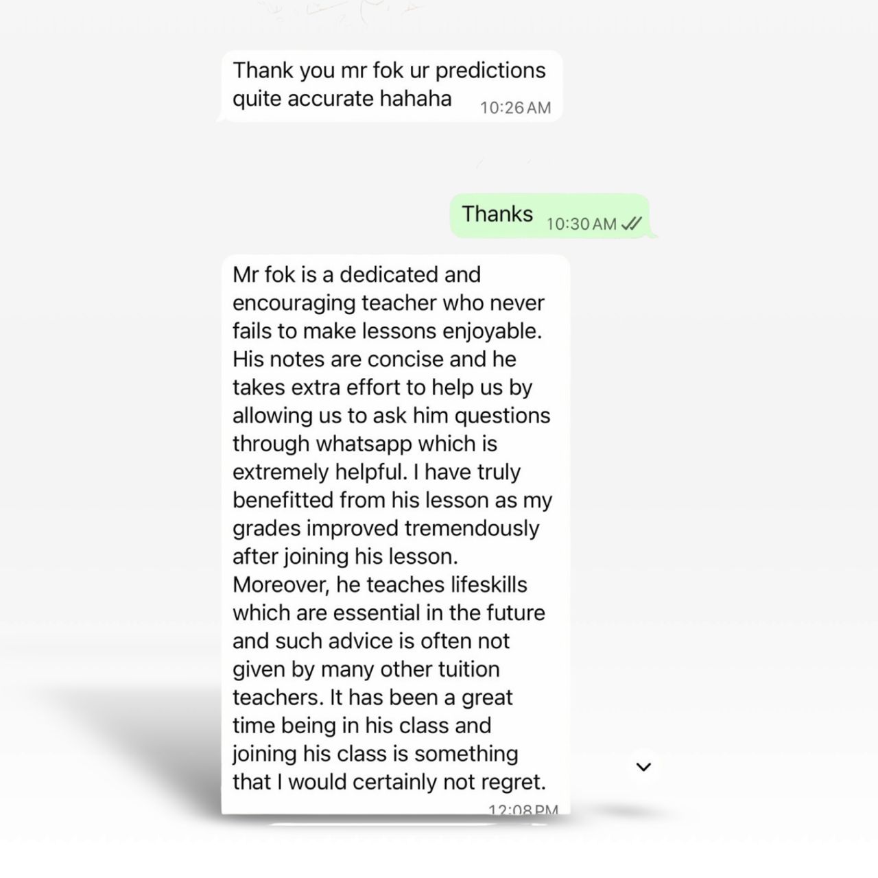 Screenshots of sample evidence from students to demonstrate the consistent accuracy of Dr. Anthony Fok’s spotting:
